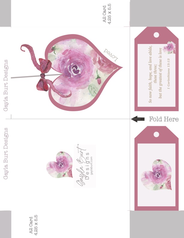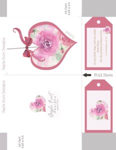 This card and the coordinating tags are the perfect way to warm the heart of someone you love. Print from home on 8 1/2 x 11 cardstock or take the file to a local printer like Office Depot. Embellish with glitter if you like extra bling. Add ribbons to the tags and you have a perfect way to say “I Love You.”